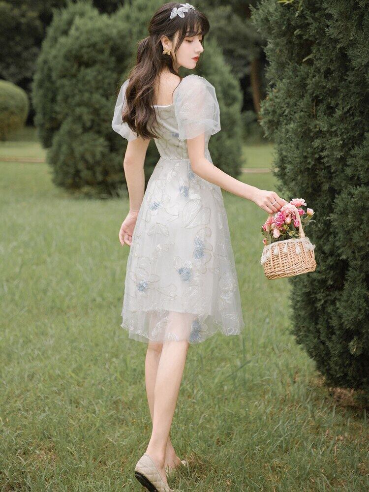送料無料୨♥୧ 2021サマーレディース妖精ドレス 平方カラー刺繍Butterflyデザイン パフスリーブメッシュパーティードレス ワンピース AOS31279822785