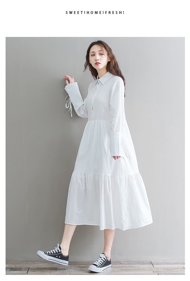 送料無料୨♥୧ 森オータムレディースホワイトロングドレス 断るカラールーズフリルコットンヴィンテージ甘い AOS93073069489