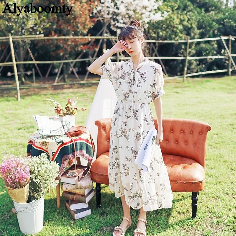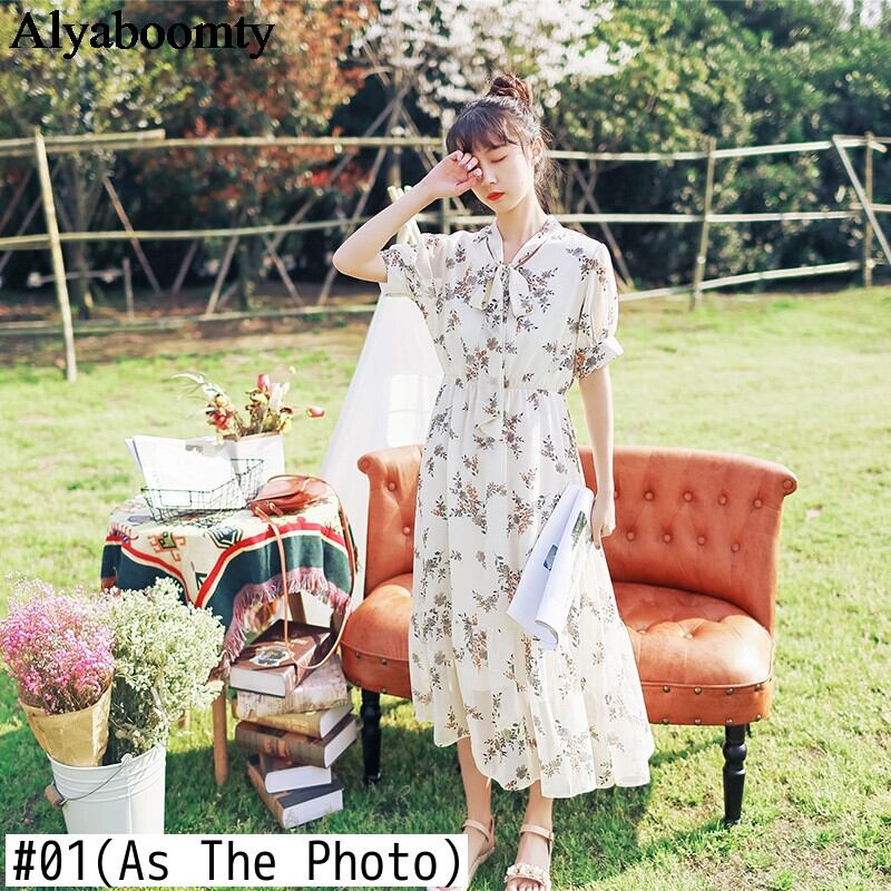 送料無料୨♥୧ 森サマーレディースロングドレス リボンフローラルプリント柄ストレッチウェストローブシフォン草原シック甘い AOS80633631906