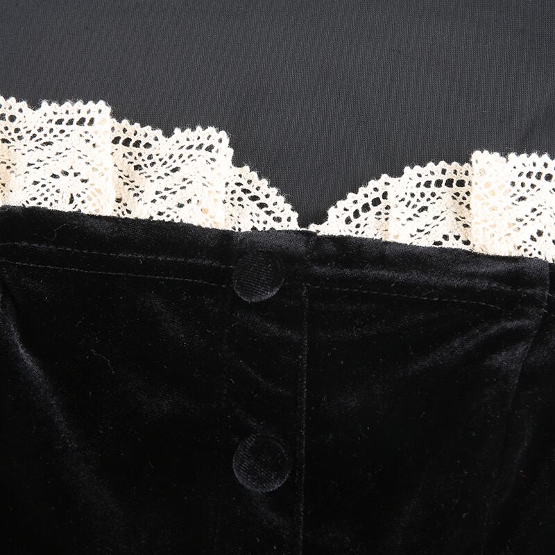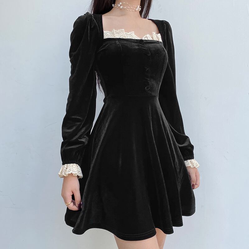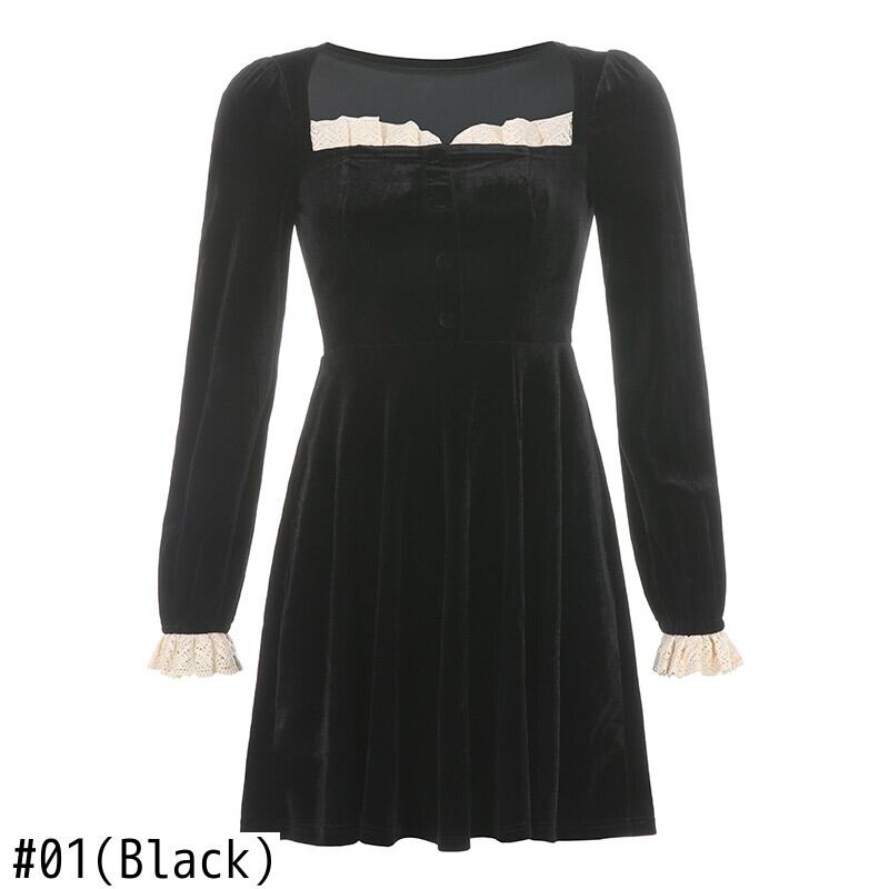 送料無料୨♥୧ ese原宿レディースブラックミニパーティードレス ゴシック平方カラーとレース AOS29920156576