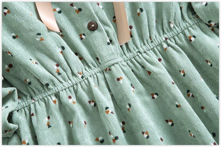 送料無料୨♥୧ オータムレディースコーデュロイドレス 断るカラーグリーンピンクプリントミディ森甘いスプリングシック AOS56322359479