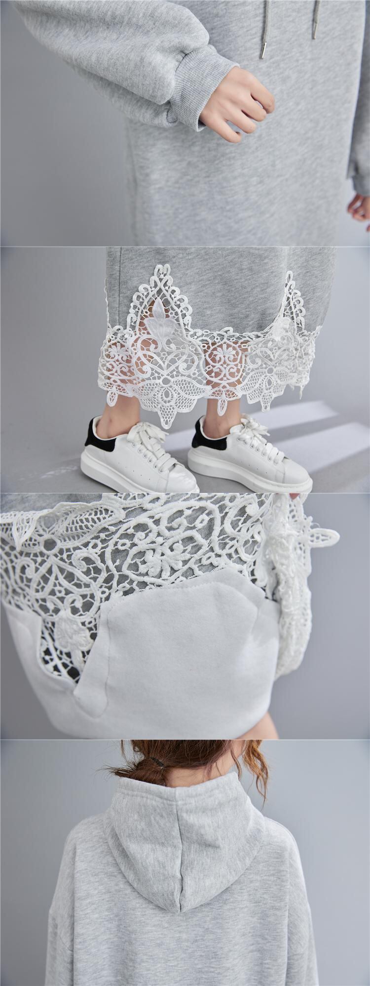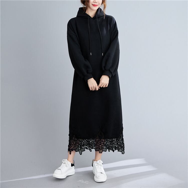 送料無料୨♥୧ オータムウィンタープラスサイズレディースドレス コットン厚いフードレディvestidoルーズ長袖スリーブレース AOS47041288762
