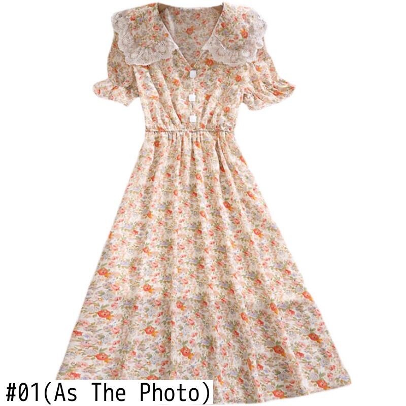 送料無料୨♥୧ 2021森サマーレディースフローラルドレス ピーターパンカラーとレースシックヴィンテージシフォンミディ AOS40211652819