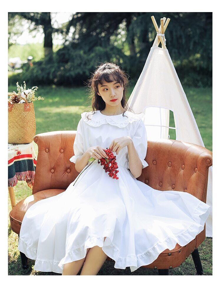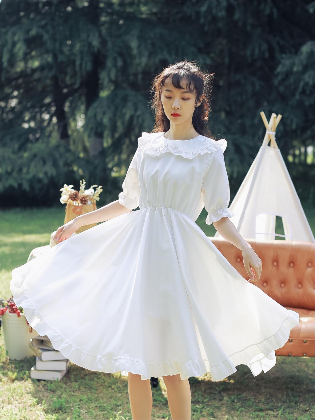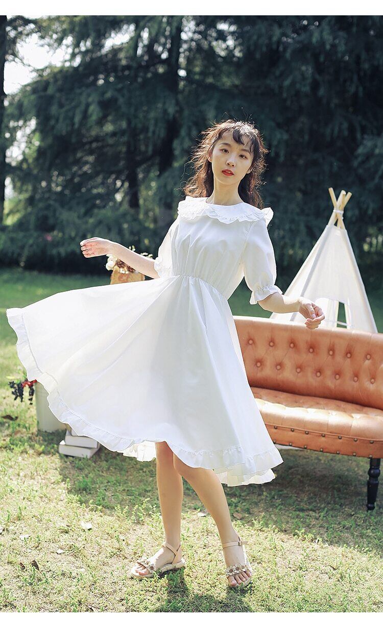 送料無料୨♥୧ スタイルサマーレディースホワイト妖精ドレス ピーターパンカラーフリル甘い半袖スリーブ可愛いロリータ AOS10930490947