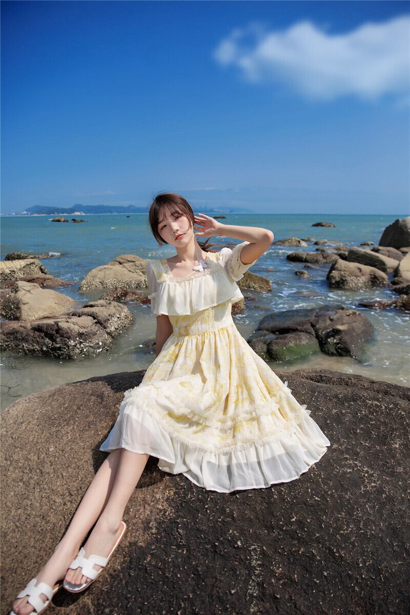 送料無料୨♥୧ サマーレディースロリータドレス 平方カラーイエロープリントButterflyデザイン シフォンフリル AOS51125857264