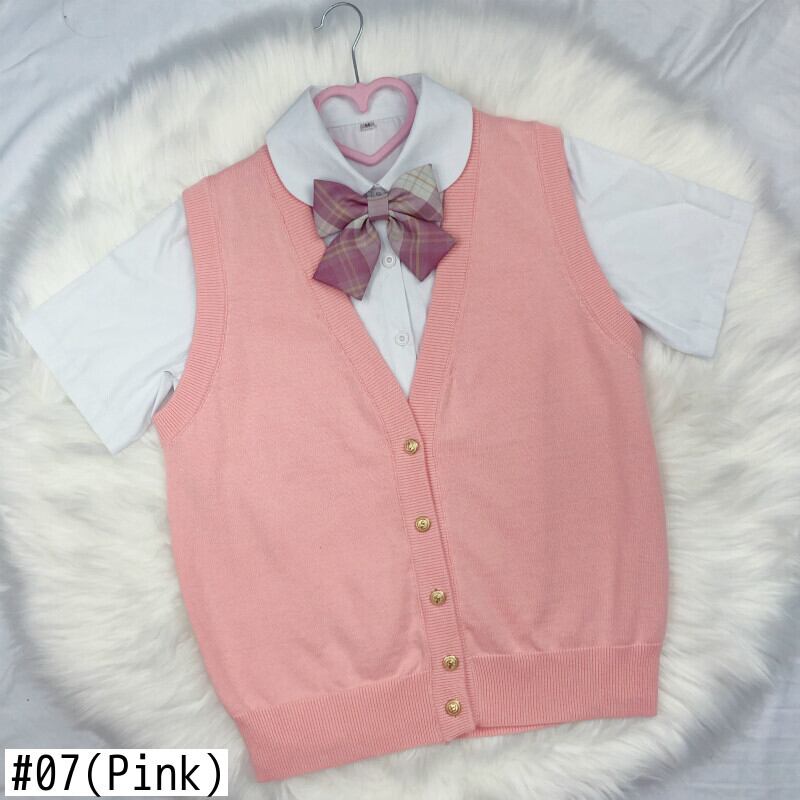 送料無料୨♥୧ eseプレッピースタイルレディースベーシックjkセーター ベストキャンディーカラーVネック全試合ニットタンクピンクグリーンブルーイエロー紫のトップス AOS80116822994