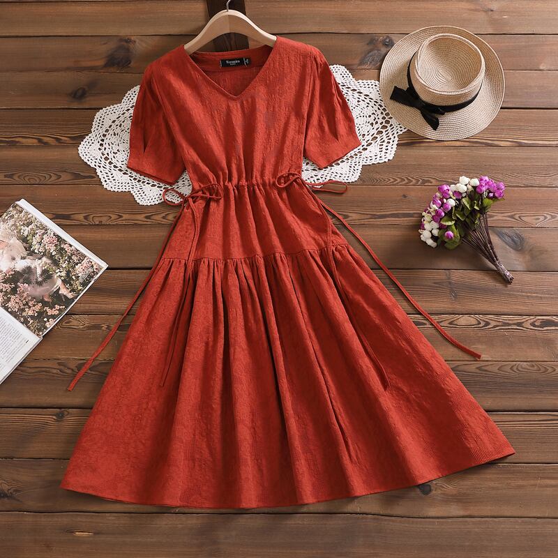送料無料୨♥୧ ヴィンテージレースアップパフスリーブミディドレス AOS54629753002