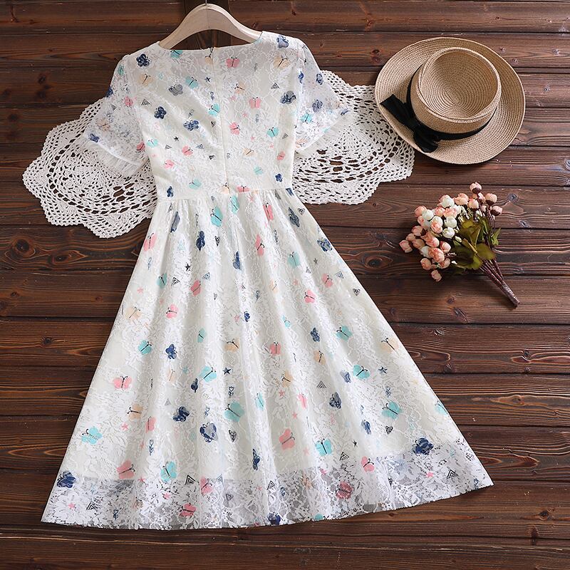 送料無料୨♥୧ ホワイトピンクButterflyデザイン レースドレス AOS49845137936