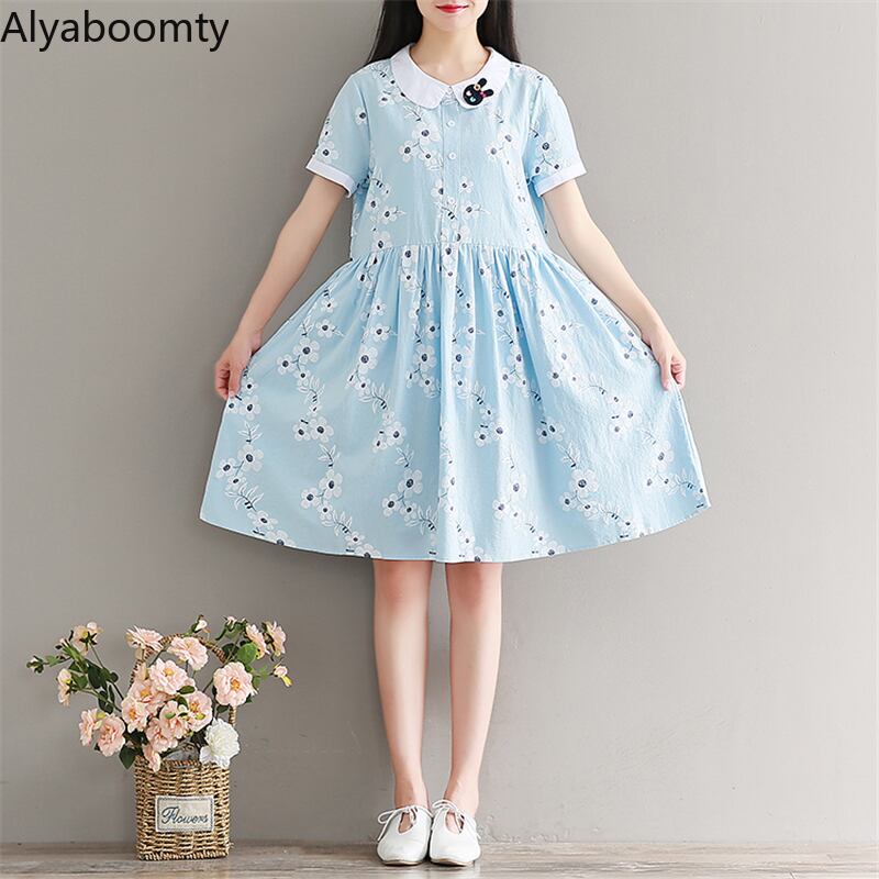 送料無料୨♥୧ 2021森サマーレディース可愛いルーズドレス ピーターパンカラーピンクブルーフローラル甘いバニーコットン学生 AOS45383775475