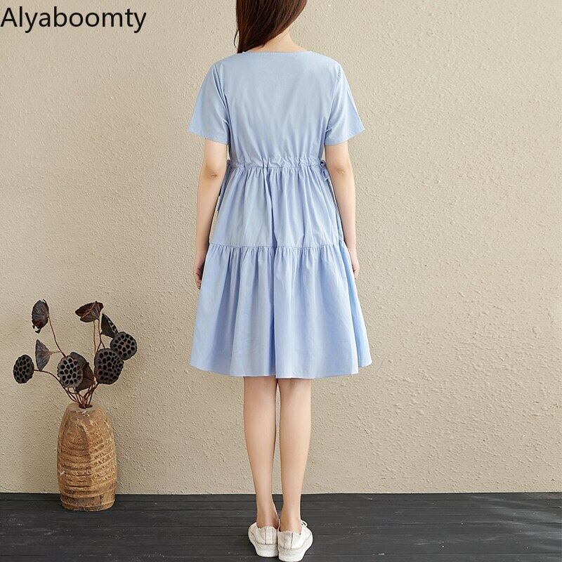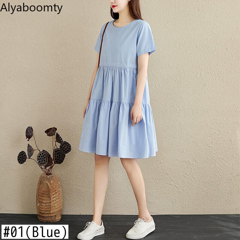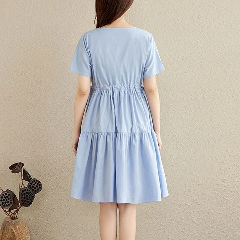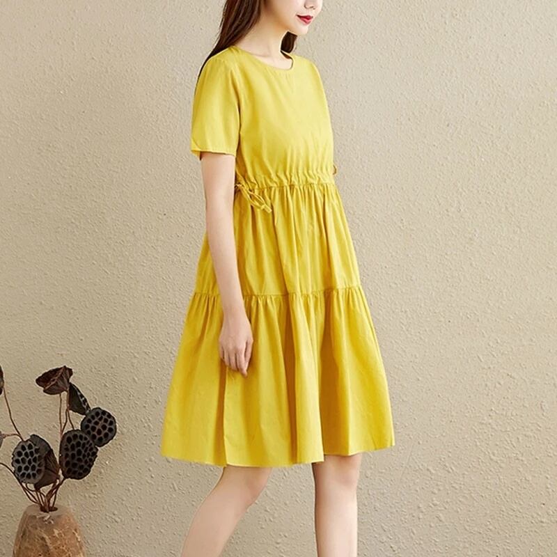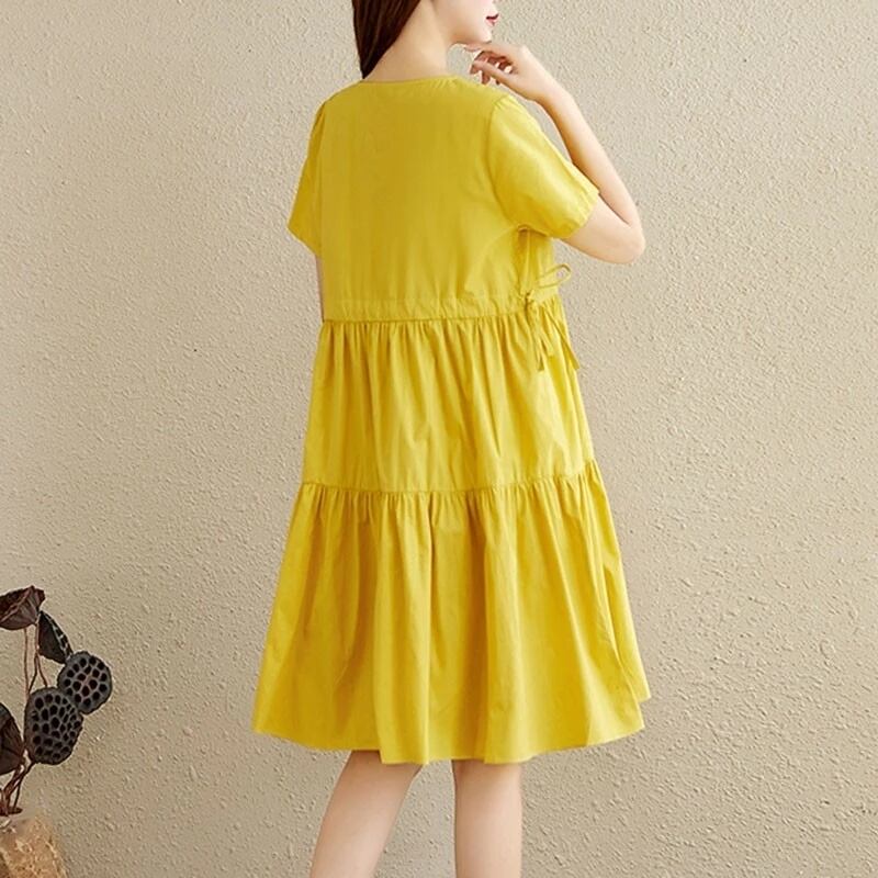 送料無料୨♥୧ 森oサマーレディースベーシックソリッド ドレス 首イエローブルー半袖スリーブレースアップルーズフリルコットン AOS55455019939