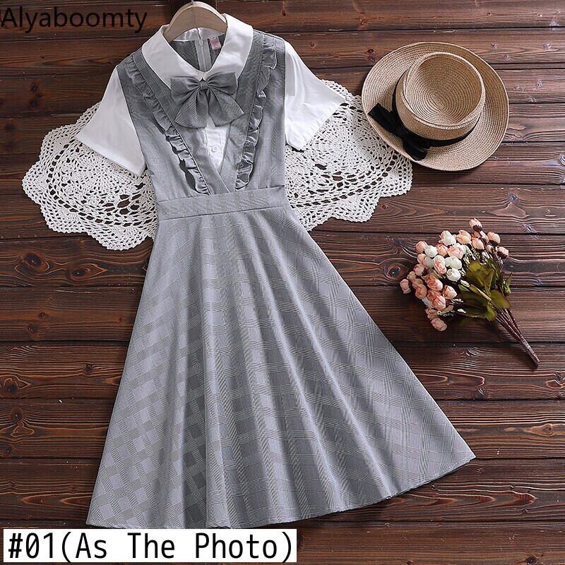 送料無料୨♥୧ 2021プレッピースタイルサマーレディース可愛いドレス 断るカラーパッチワーク格子柄学生リボン AOS7331482473