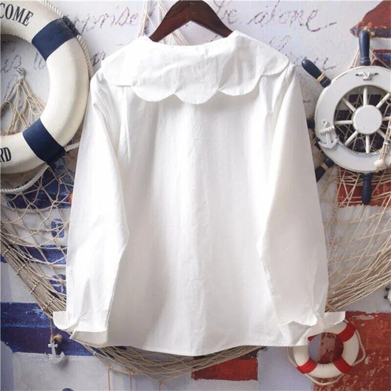 送料無料୨♥୧ スプリングオータムレディースjkホワイトシャツ ピーターパンカラー動物刺繍ルーズブラウス 可愛いロリータ長袖スリーブリボン AOS13451399514