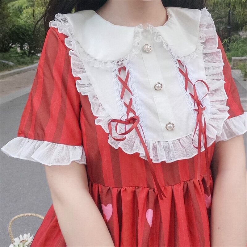 送料無料୨♥୧ 2021eseサマーレディースロリータドレス ピーターパンカラーピンクレッド漫画プリント可愛いフリルパーティー AOS99814566413