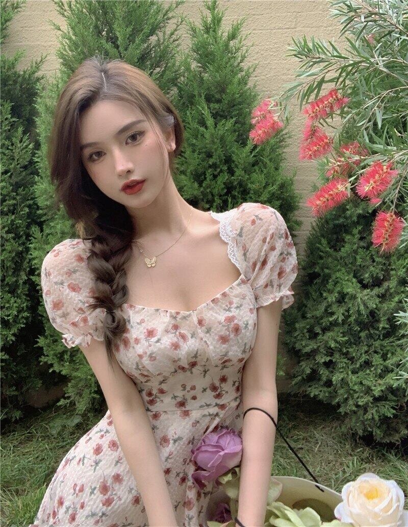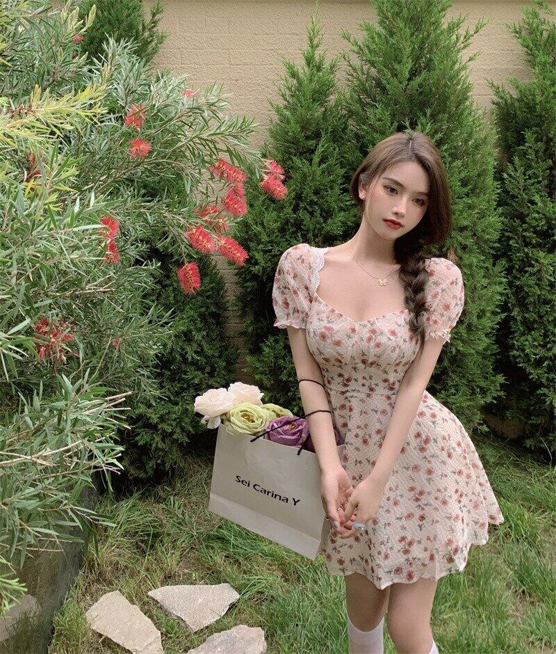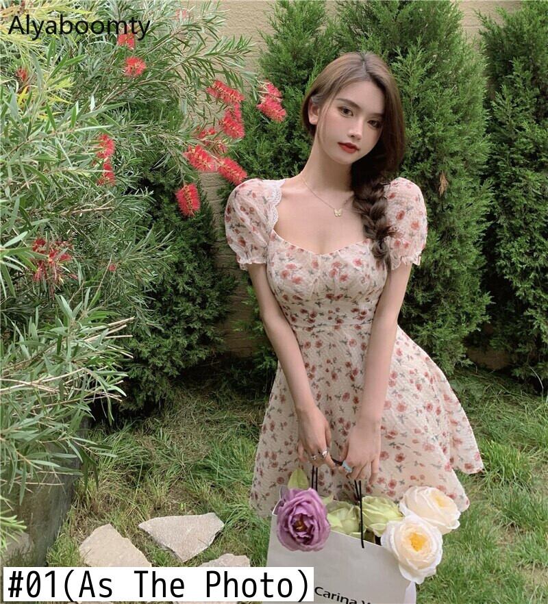 送料無料୨♥୧ サマーレディースフローラルミニパーティードレス バックレスバンドレースセクシー甘いalyaboomtyパフスリーブ草原シック AOS59597664060