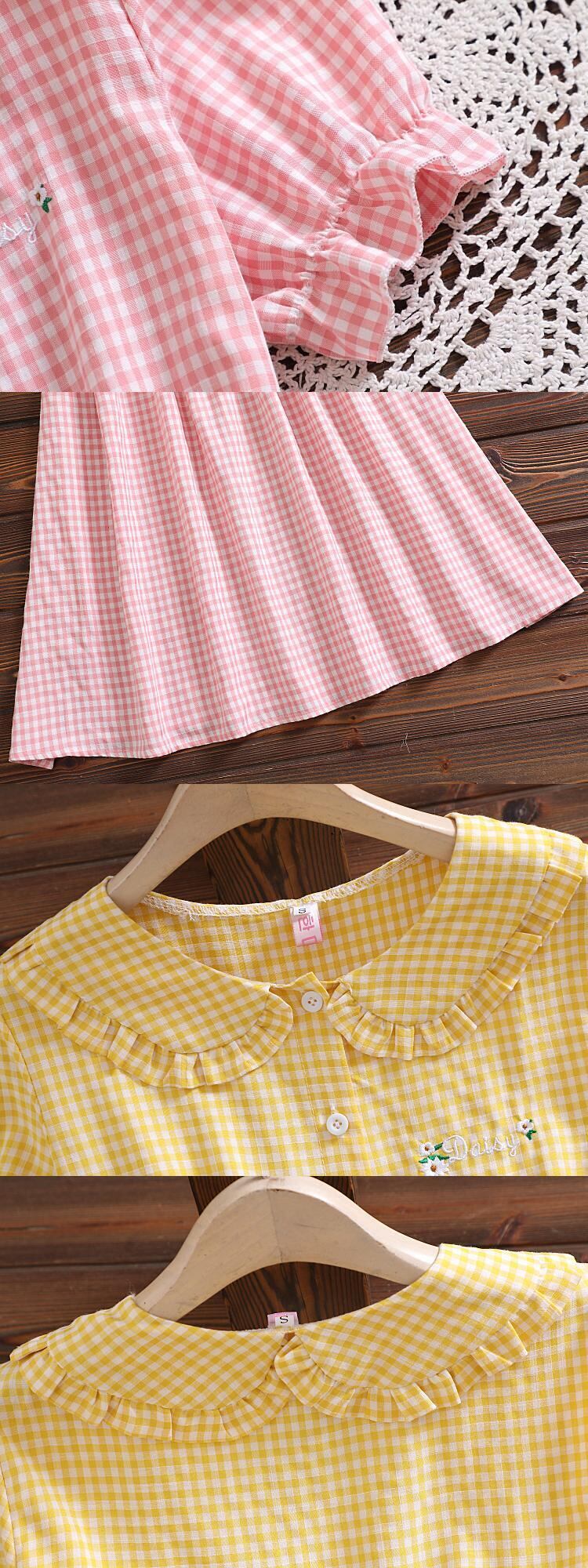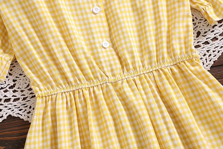 送料無料୨♥୧ ピンクイエロー格子柄ドレス と刺繍 AOS93428821751