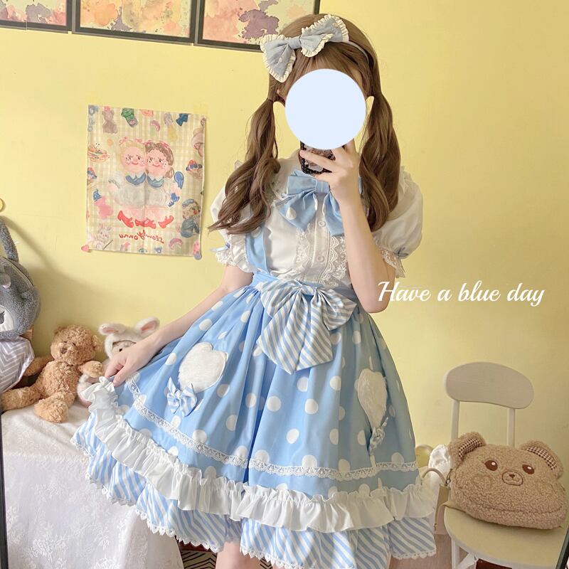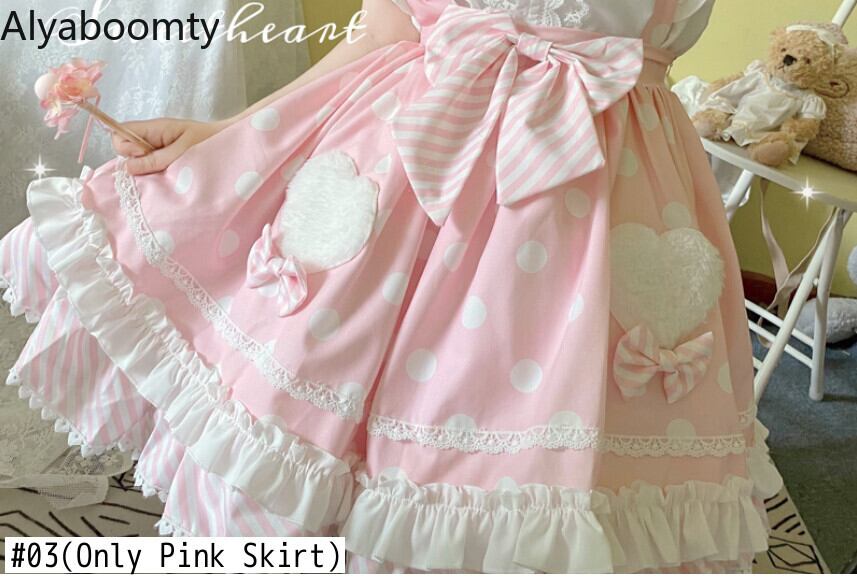 送料無料୨♥୧ eseサマーレディース可愛いロリータスカート ストラップ ピンクレッドブラックブルー水玉ハートリボンフリル AOS62971008682