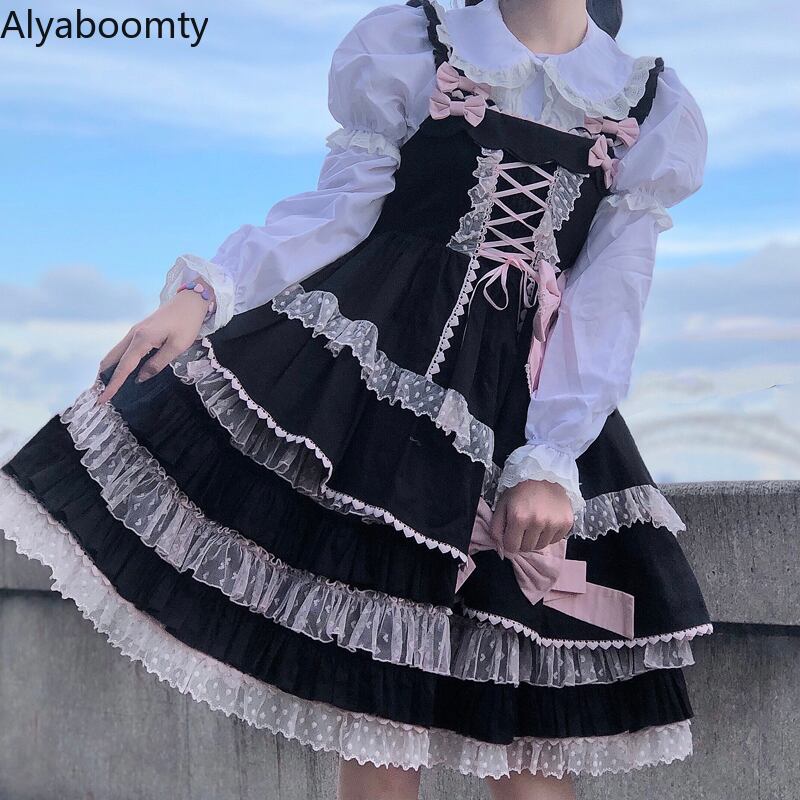 送料無料୨♥୧ eseサマー秋レディースロリータブラウス ブラックホワイトピンクピーターパンカラーフリルブルサ可愛いトップス と取り外し可能 AOS66760204877