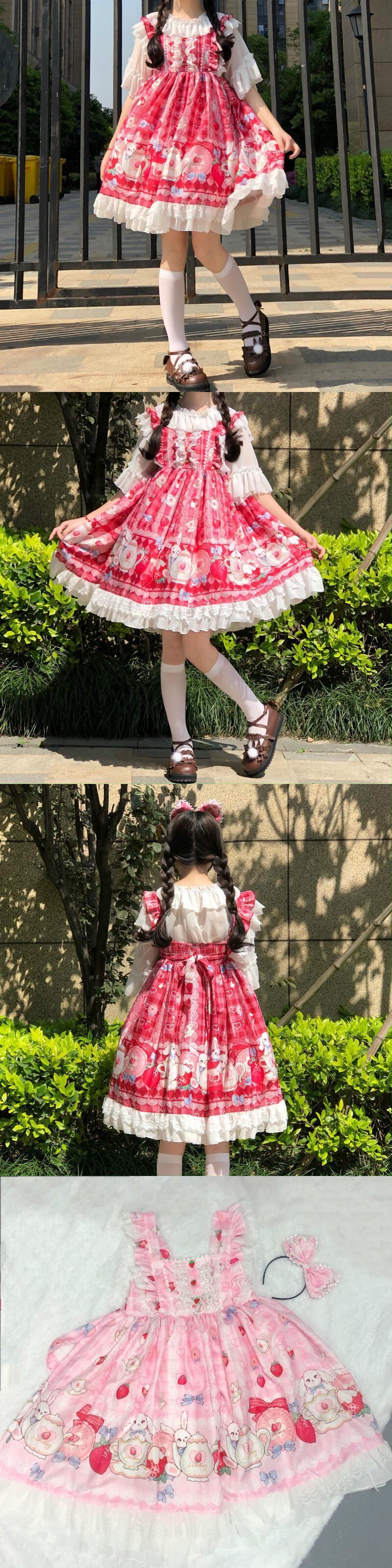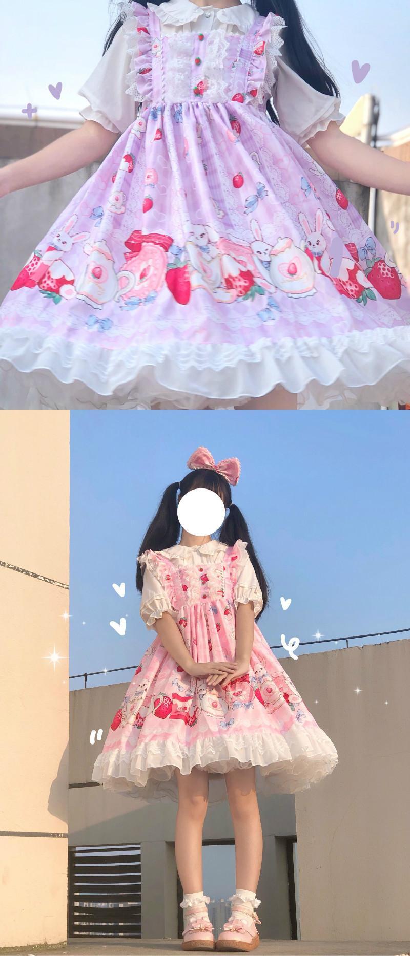 送料無料୨♥୧ eseレディースロリータノースリーブドレス ピンクレッド紫のイチゴバニーjsk愛らしい漫画 AOS39676017640
