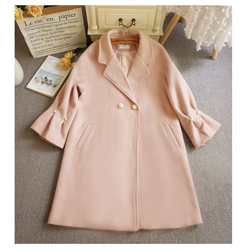 送料無料୨♥୧ レディースオータムウィンターコート アプリコットピンク悪アウター事務所レディロングカシミヤ AOS37143967508