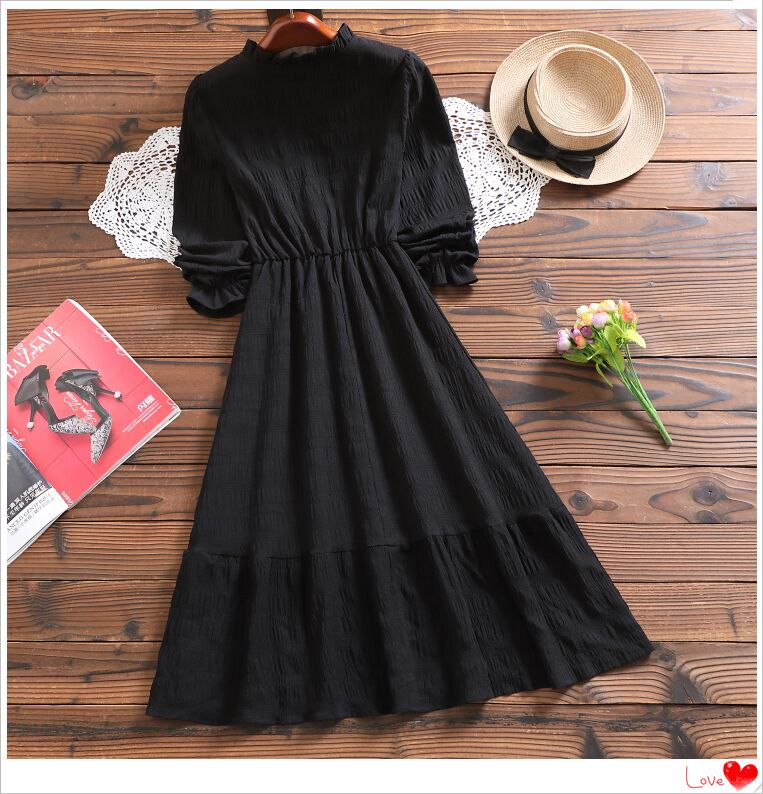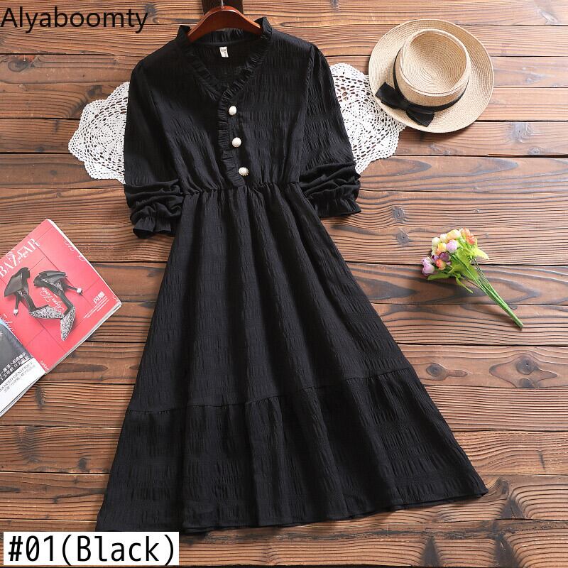 送料無料୨♥୧ 2021スプリングオータムレディースベーシックシンプルドレス カラーホワイトブラックシックミディ AOS33359741440
