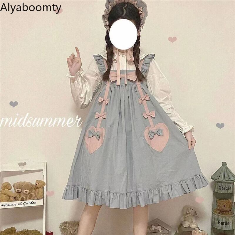 送料無料୨♥୧ eseロリータスタイルスプリングオータムレディースドレス リボンフリル可愛いノースリーブ AOS4330941027