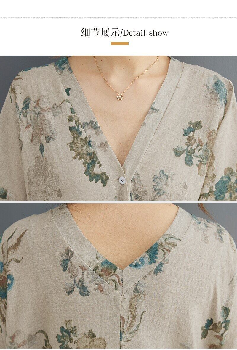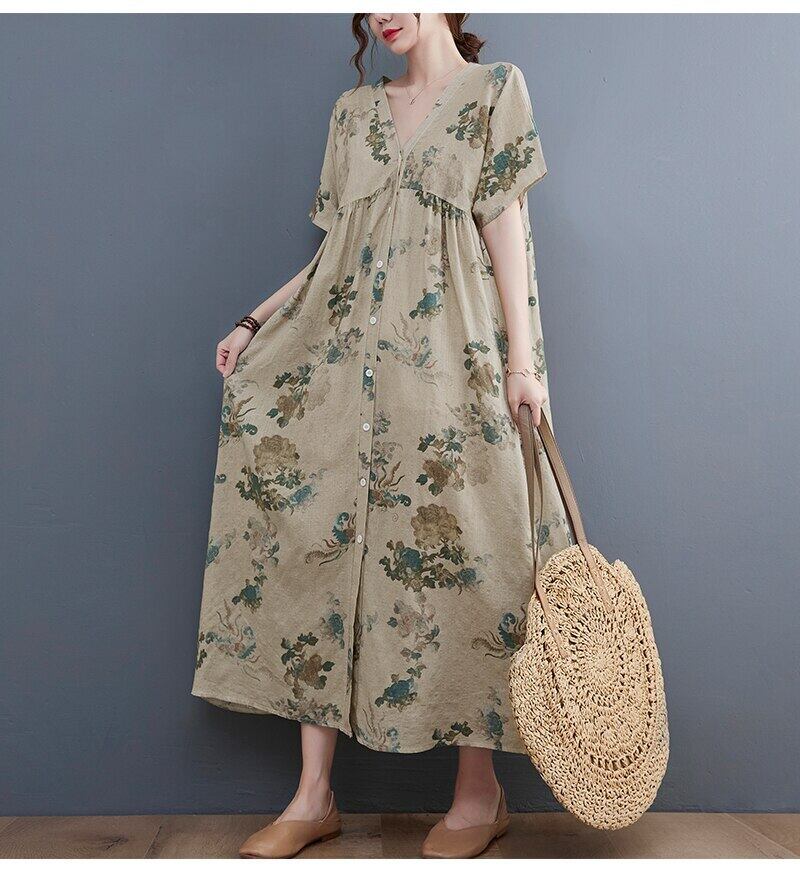 送料無料୨♥୧ サマーレディース特大ロングドレス Vネックフローラルプリントバギーシャツ コットンヴィンテージ AOS10572077370
