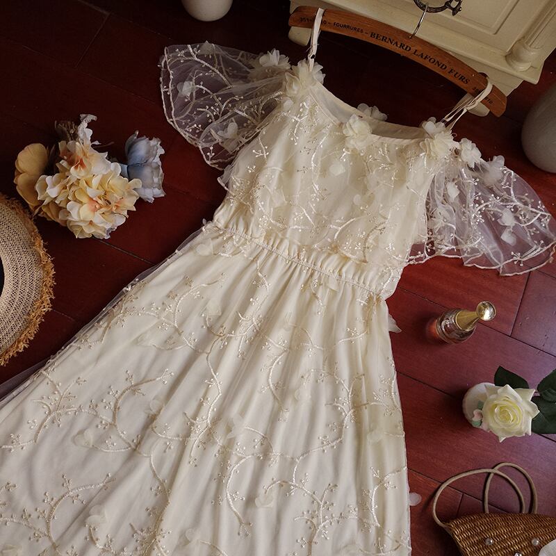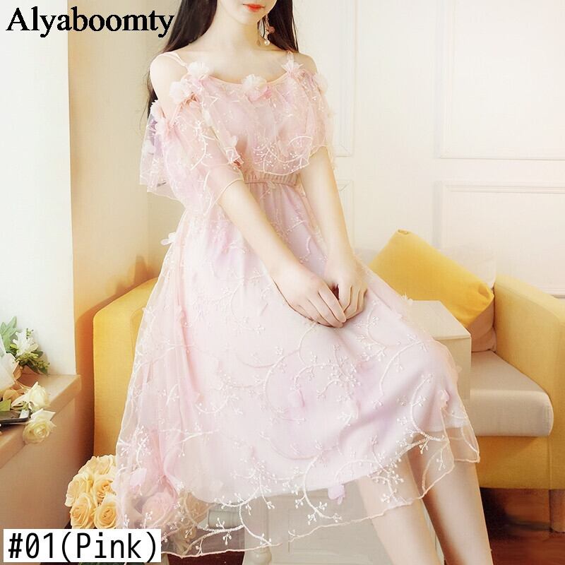送料無料୨♥୧ 2021甘いサマーレディースパーティードレス スラッシュ首ピンクアプリコットロマンチック妖精花弁sleeeゴージャスシックフローラルドレス ワンピース AOS26356131201