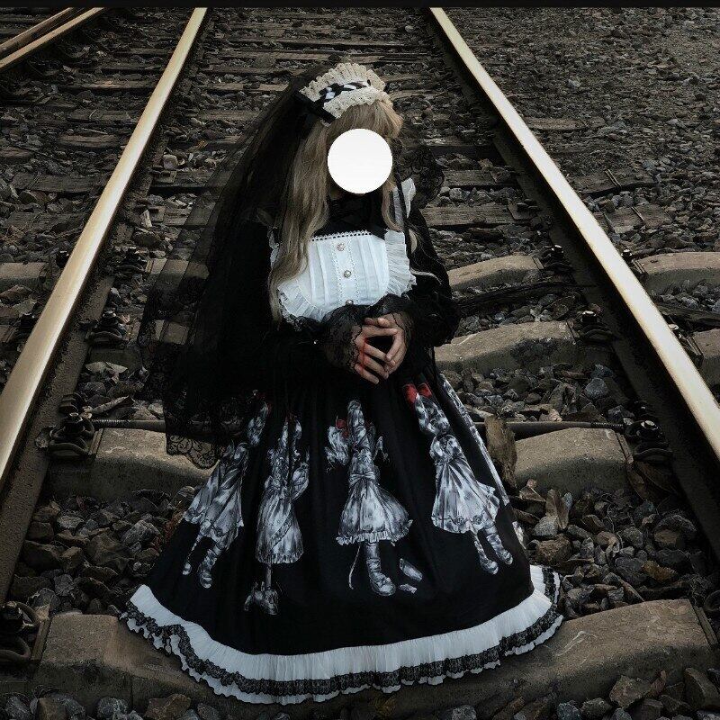 送料無料୨♥୧ eseゴシックレディースブラックコスプレjskドレス キャラクター漫画プリント柄ノースリーブフリル AOS15914481409