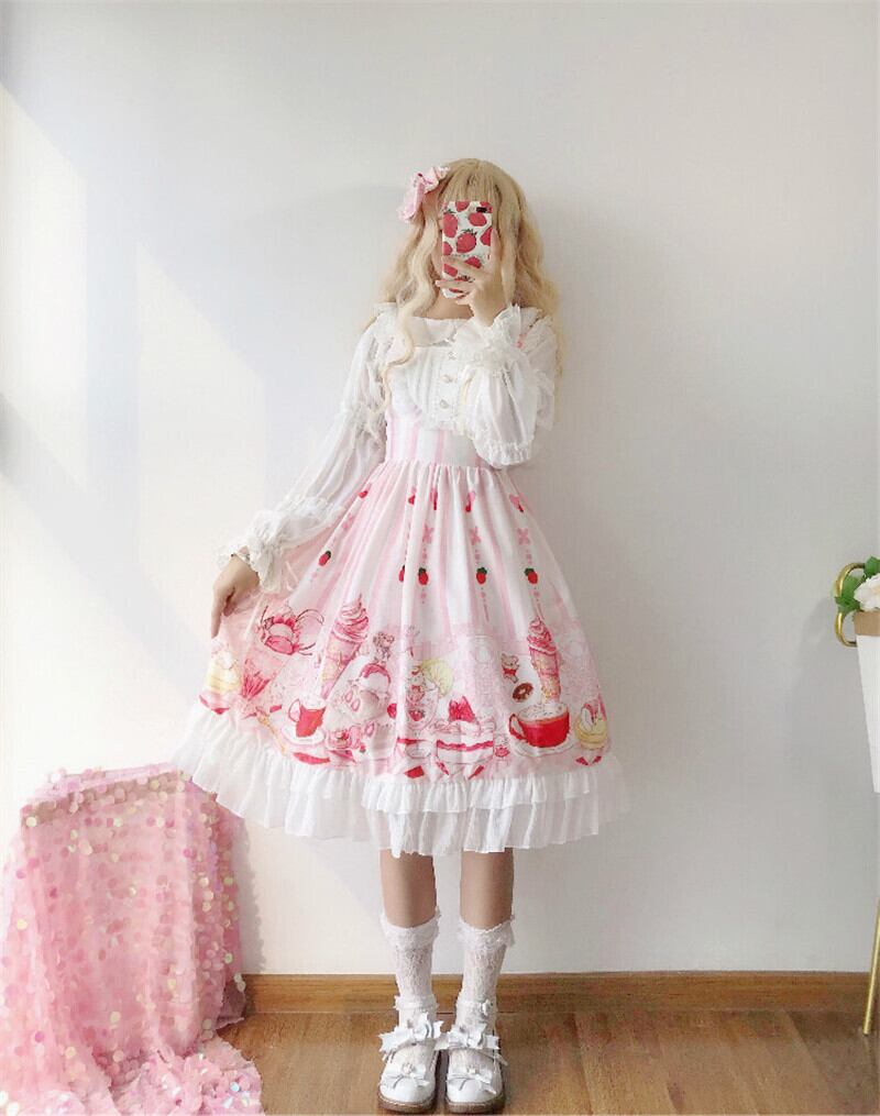送料無料୨♥୧ eseロリータスタイルレディース可愛いドレス ピンクレッド漫画プリントノースリーブ甘いのパーティードレス ワンピース AOS23816772980
