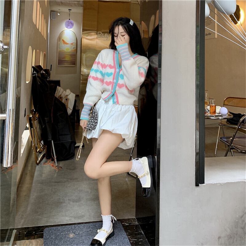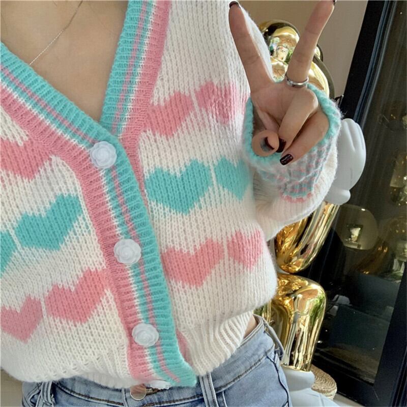 送料無料୨♥୧ スプリングオータムレディースショートセーター Vネックハートニットカーディガンアウター 大人ガーリー スウィート キュート カジュアル かわいい 春物 秋物 AOS55377268411