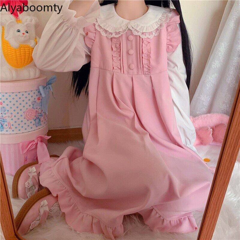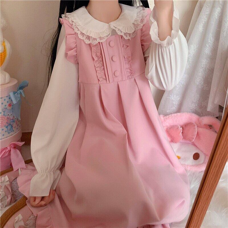 送料無料୨♥୧ スタイルレディースドレス ブラックルーズオータムスプリングフリルノースリーブ ピンク ラッフル 大人ガーリー スウィート キュート カジュアル 春物 秋物 AOS20214528438
