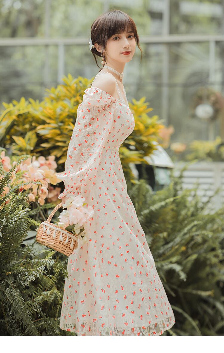 送料無料୨♥୧ レディーススプリングオータムミディドレス パールフローラルオフショルダーレース 春物 秋物 花柄 真珠 AOS96192446960