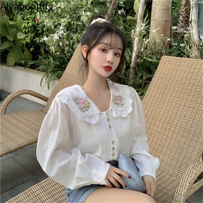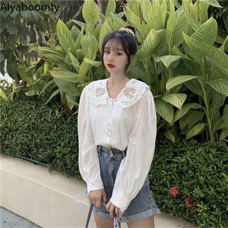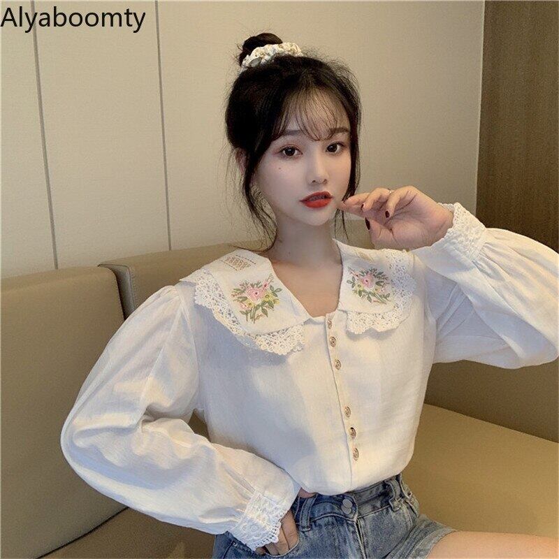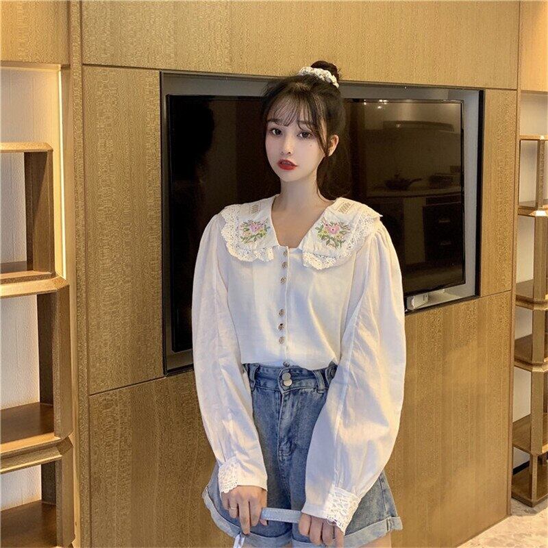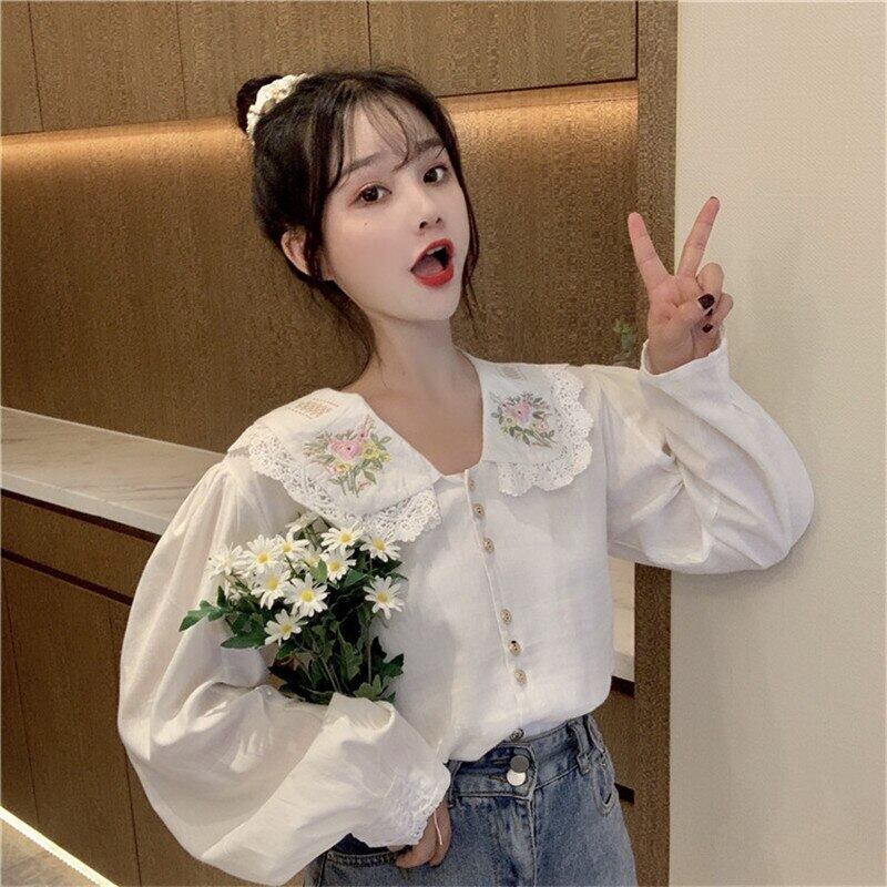 送料無料୨♥୧ スタイルスプリングオータムレディースシャツ カラーブラウス フローラル刺繍 コットン 大人ガーリー スウィート キュート カジュアル 春物 秋物 花柄 AOS25498377509