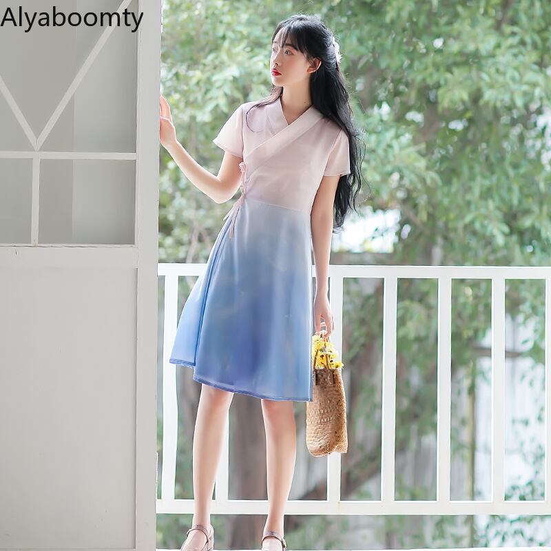 送料無料୨♥୧ ヴィンテージスタイルサマーレディースAラインドレス クロスVネックカラーバンド半袖スリーブドレス ワンピース ショート ハーフスリーブ 夏物 ビンテージ AOS18533473437