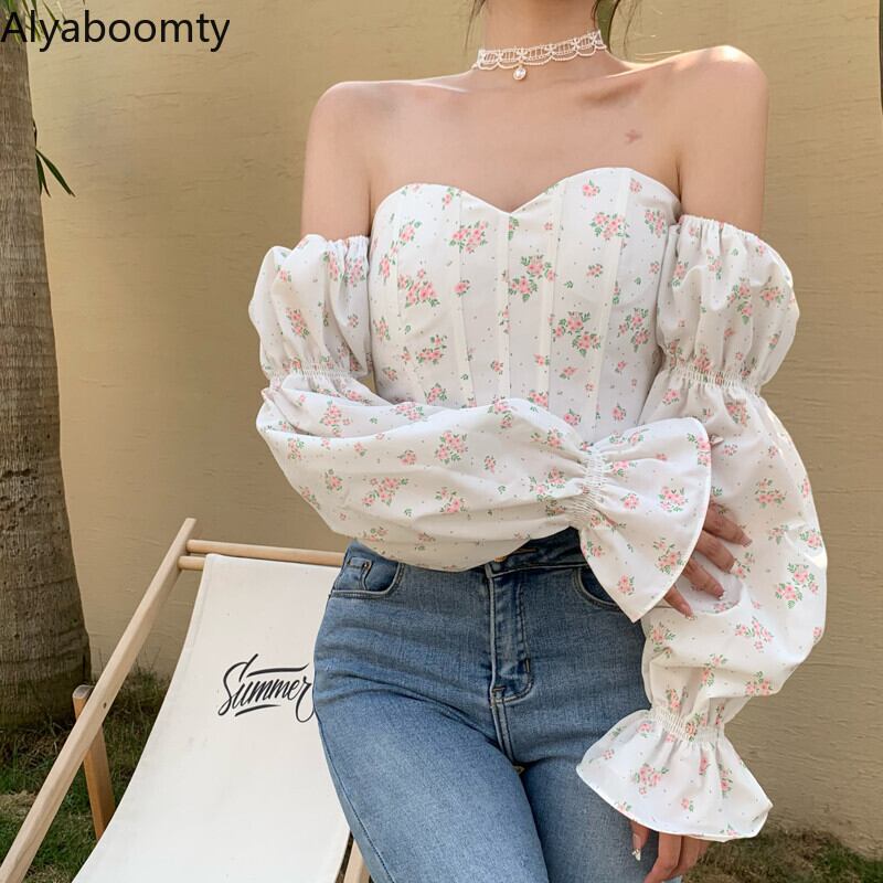 送料無料୨♥୧ サマーレディースクロップトップ トップス フローラルプリントバックレスブラウス オフショルダージッパーショート 夏物 花柄 AOS34739624144