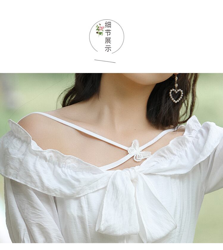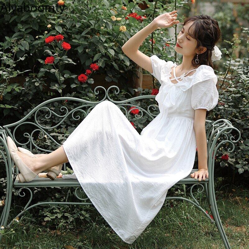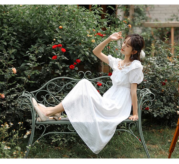 送料無料୨♥୧ 2021サマーレディースロングパーティードレス 平方カラーButterflyデザイン ホワイトシックリボン妖精ゴージャス AOS40358620530