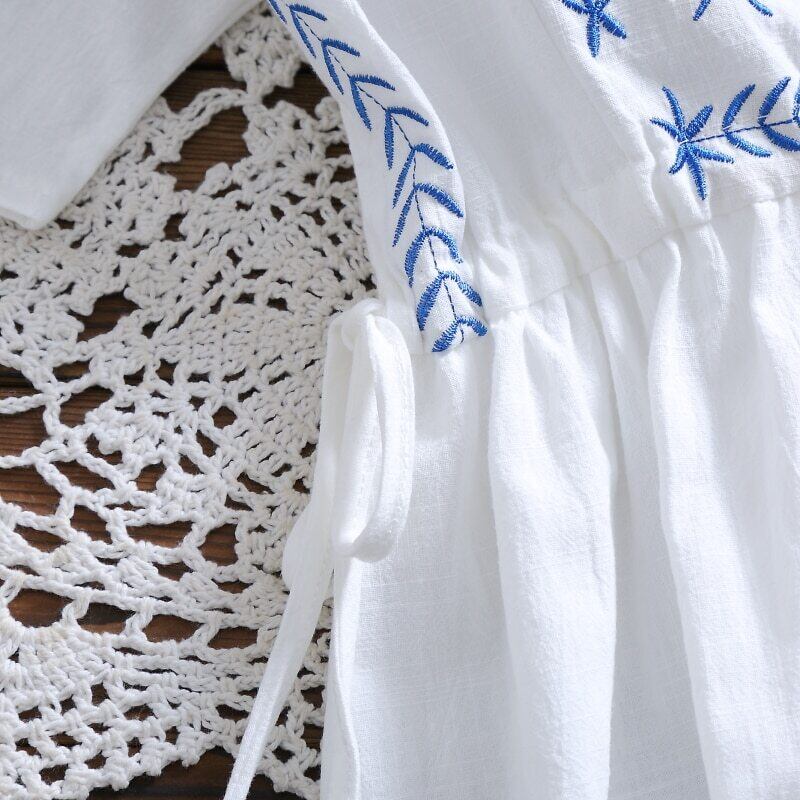 送料無料୨♥୧ ese森サマーレディースホワイトドレス コットンルーズミディフローラル刺繍ヴィンテージ甘い AOS37600719890