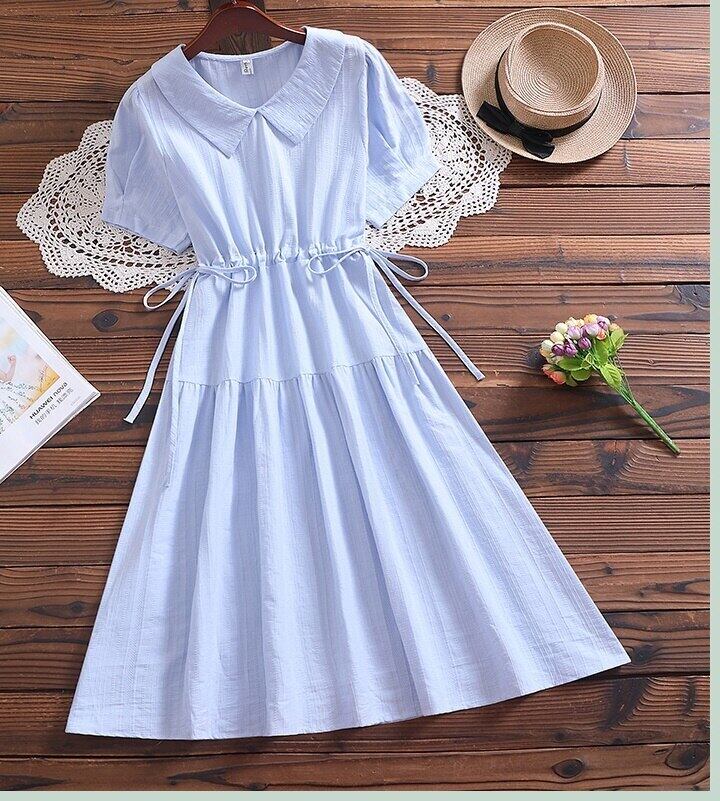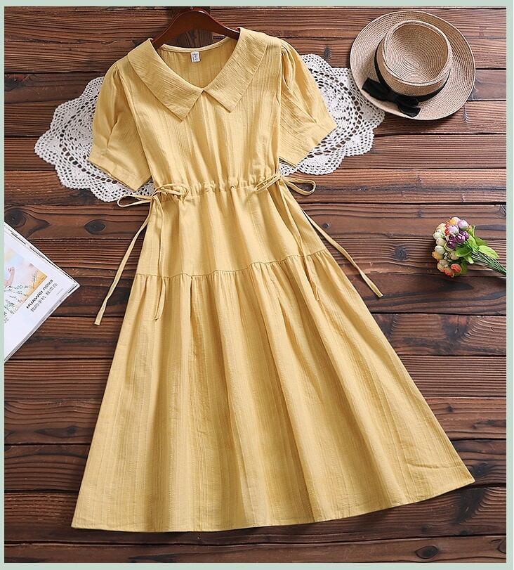 送料無料୨♥୧ 森サマーブルーイエローコットンバンドドレス AOS12985121550
