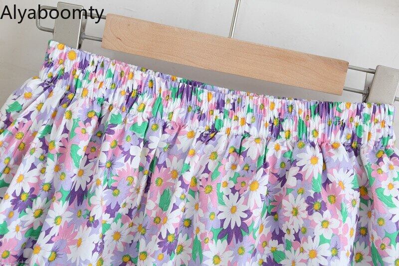 送料無料୨♥୧ 2021森サマーレディース甘いスカート ウェスト紫のフローラル草原シックコットンミニと裏地 AOS74783789845