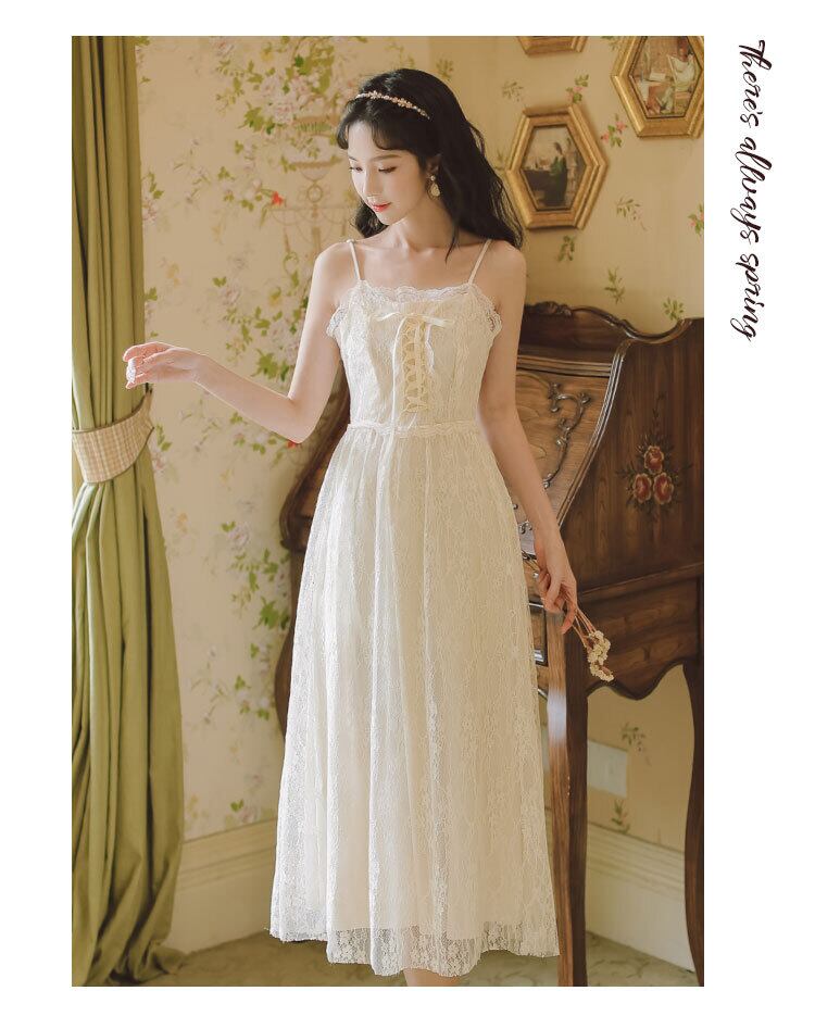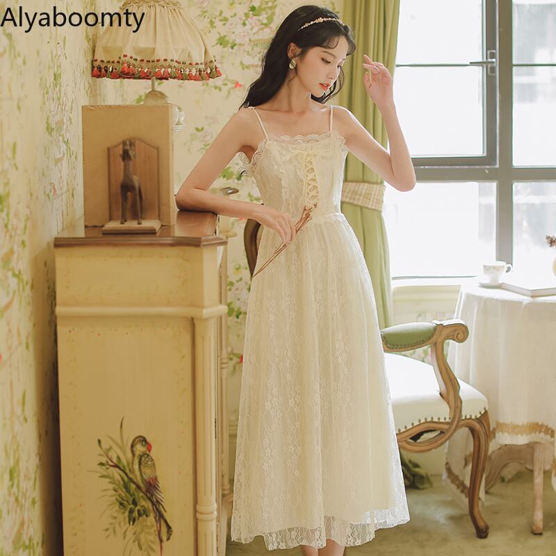 送料無料୨♥୧ 2021サマーレディース繊細ロングレースドレス スパゲッティストラップホローでるバンド休日ノースリーブパーティーシック AOS8955262450