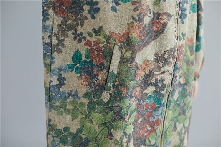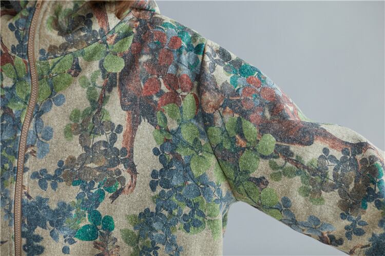 送料無料୨♥୧ オータムウィンターレディースフードヴィンテージプリント柄グリーンフローラルジッパールーズバギーコート 秋物 冬物 花柄 ビンテージ AOS73199133290