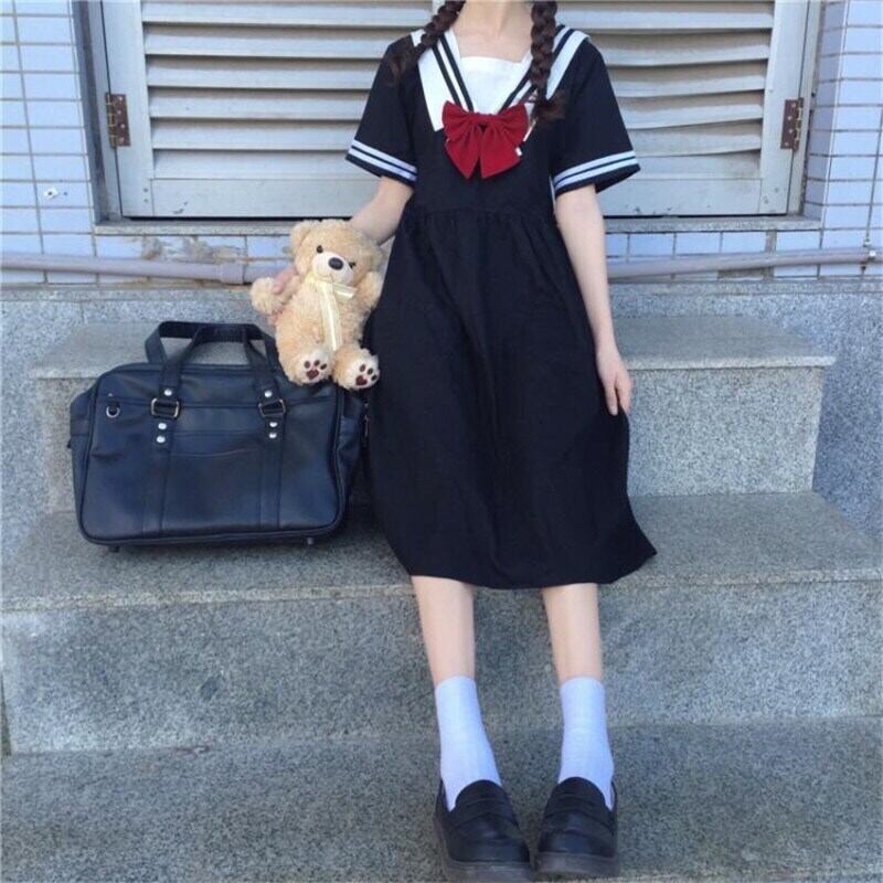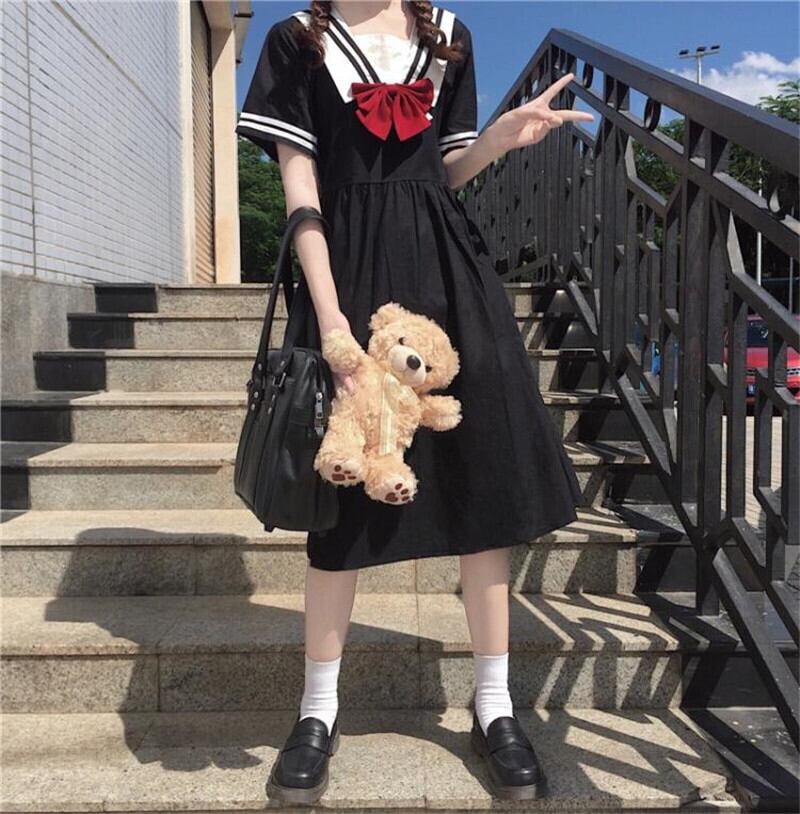 送料無料୨♥୧ スタイルサマーレディースドレス カラーブラックルーズ半袖スリーブリボン ショート コットン ハーフスリーブ 大人ガーリー スウィート キュート カジュアル 夏物 AOS27782124086