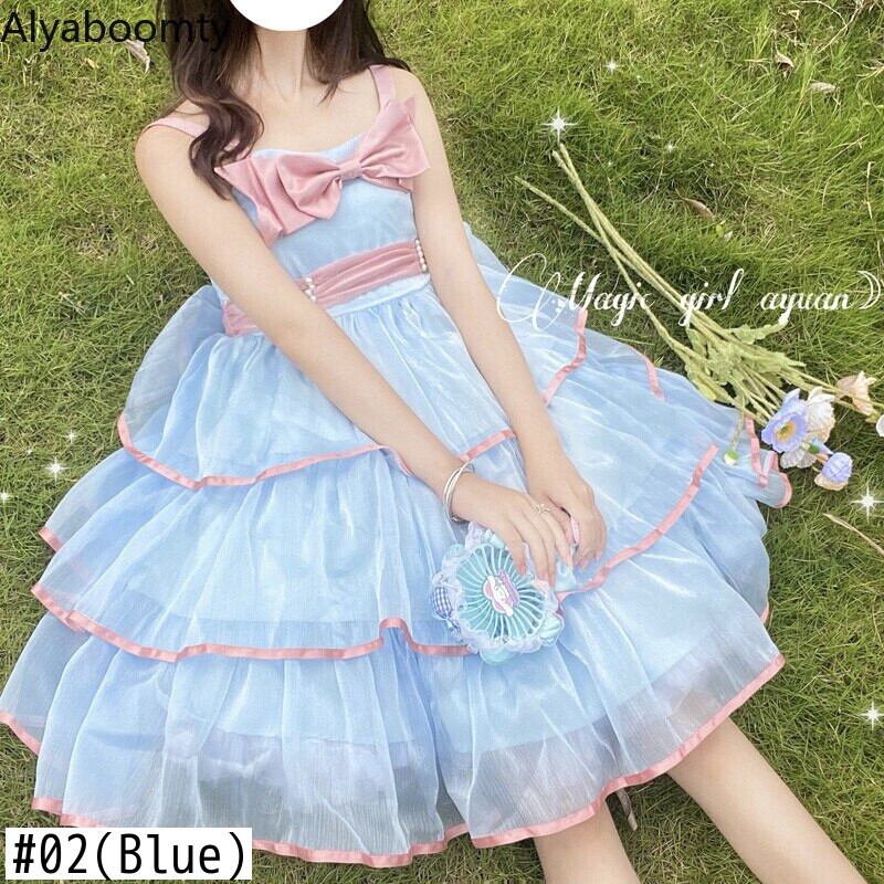 送料無料୨♥୧ サマーレディースドレス ブラックブルーイエローリボンノースリーブフリル ピンク レッド ラッフル 大人ガーリー スウィート キュート カジュアル 夏物 パープル AOS22542136248