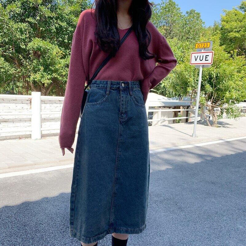 送料無料୨♥୧ スタイルオータムウィンターレディースミディスカート ウェストヴィンテージ コットン 秋物 冬物 ビンテージ AOS65976347937