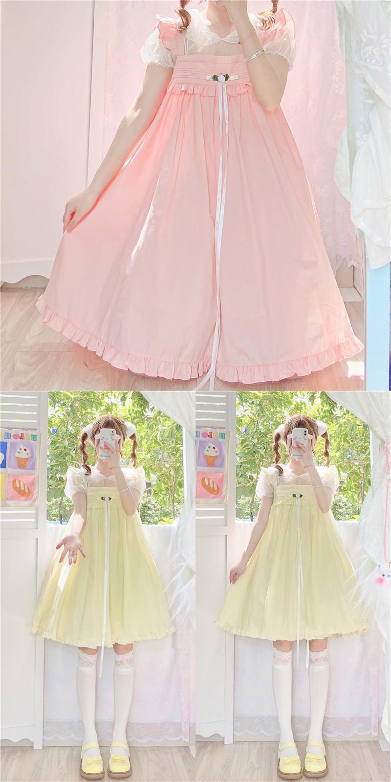 送料無料୨♥୧ eseサマーオータムレディースロリータドレス ブルーピンクイエローノースリーブバギー可愛いキャンディーカラーフリル AOS64917393540