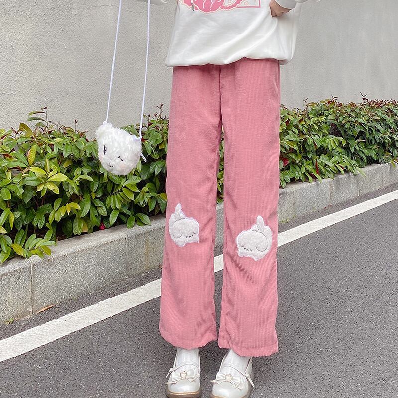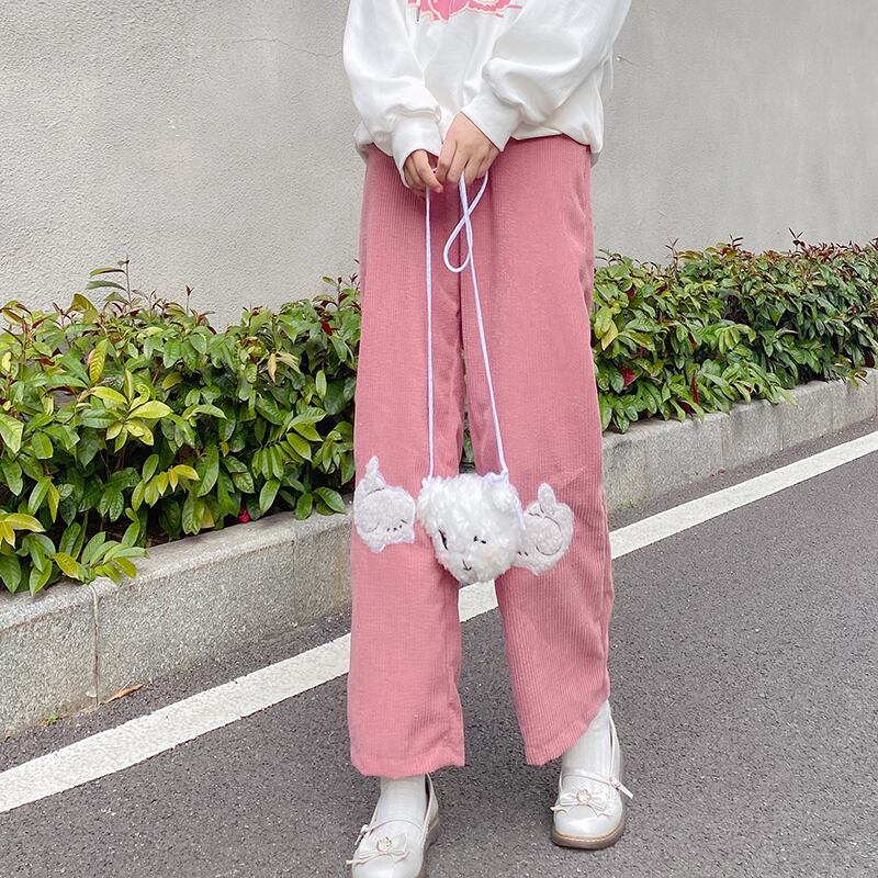 送料無料୨♥୧ スタイルスプリングオータムレディースパンツ ウェストパッチワークワイドレッグコーデュロイ ピンク 大人ガーリー スウィート キュート カジュアル 春物 秋物 ワイドパンツ AOS72168573947