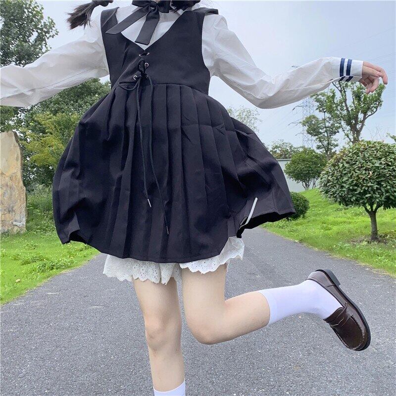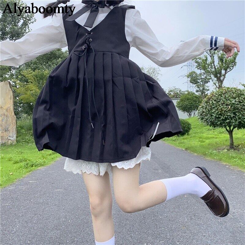 送料無料୨♥୧ レディースブラックミニプリーツドレス Vネックバンドノースリーブオータムスプリング 大人ガーリー スウィート キュート カジュアル かわいい 春物 秋物 AOS85138320313
