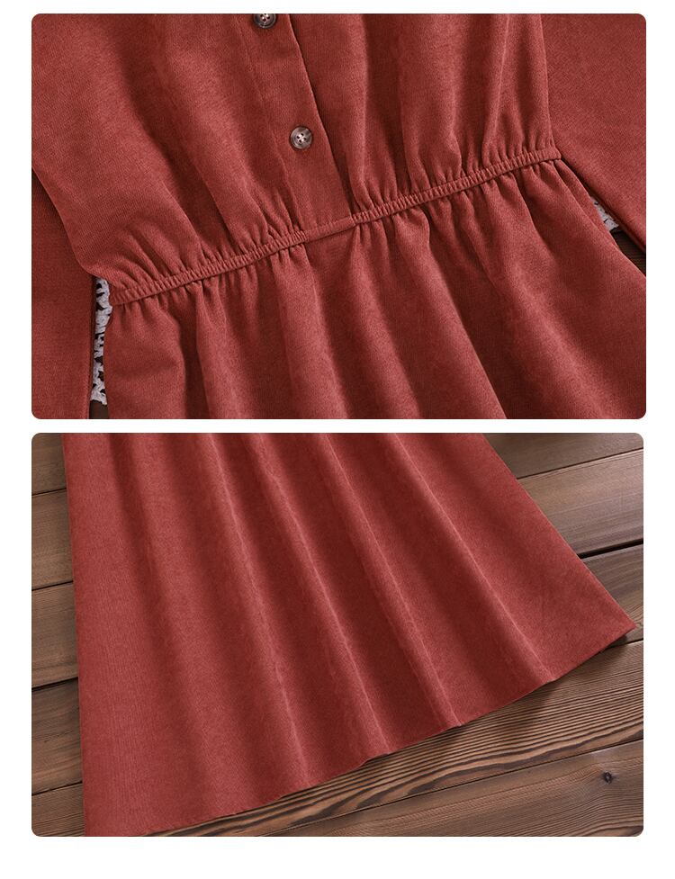 送料無料୨♥୧ オータムウィンターレディースミディドレス カラーブラウンコーデュロイ 大人ガーリー スウィート キュート カジュアル 秋物 冬物 AOS91016479421
