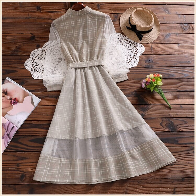 送料無料୨♥୧ オータムスプリングレディースロングドレス カラー格子柄グレーメッシュドレス ワンピース ピンク 大人ガーリー スウィート キュート カジュアル 春物 秋物 AOS43107813171