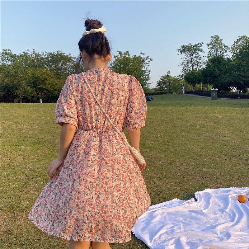 送料無料୨♥୧ サマーレディースミニフローラルドレス VネックFlowerデザイン ドレス ワンピース ピンク 夏物 花柄 フラワーデザイン パープル AOS10578606615